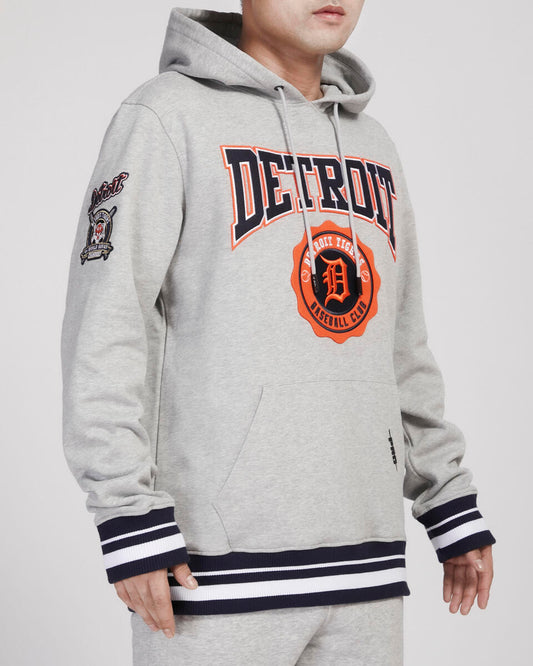Pro Standard - Detroit Tigers Crest Emblem Rib Fleece Pull Over Hoodie - Heather Grey/Navy