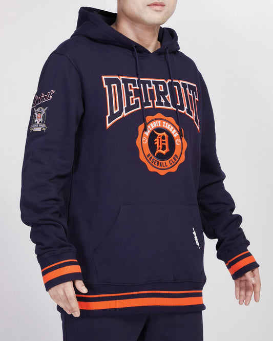 Pro Standard - Detroit Tigers Crest Emblem Rib Fleece Pull Over Hoodie - Navy/Orange/Navy