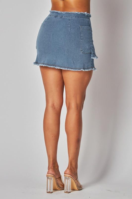 HOT&DELICIOUS- FRONT ZIPPER DENIM MINI SKIRT MED DENIM
