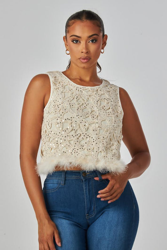 HOT&DELICIOUS-FEATHER HEM SEQUIN CROC