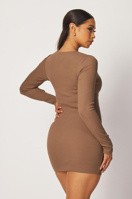 HOT&DELICIOUS DEEP V NECK RIB BODYCON DRESS