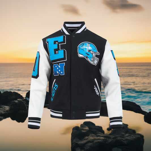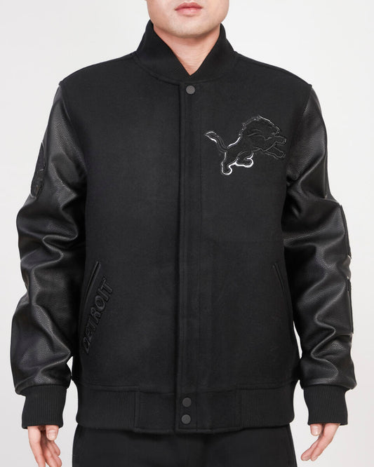 PRO STANDARD-DETROIT LIONS TRIPLE BLACK WOOL VARSITY JACKET