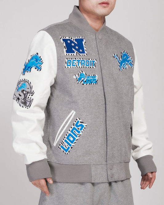 Pro Standard - Detroit Lions Animal Print Wool Varsity Jacket - Gray/White