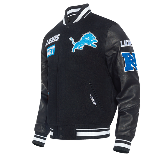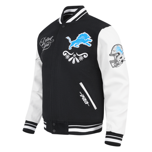 PRO STANDARD-DETROIT LIONS RETRO MASH UP M RIB WOOL VARSITY JACKET, BLACK/WHITE