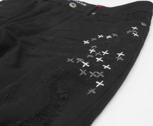 M1780 Makobi Pensacola Shredded Jeans -Black/Black