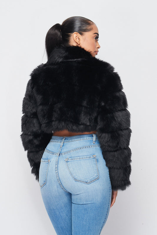 Hot & Delicious - Faux Fur Crop Jacket - Black