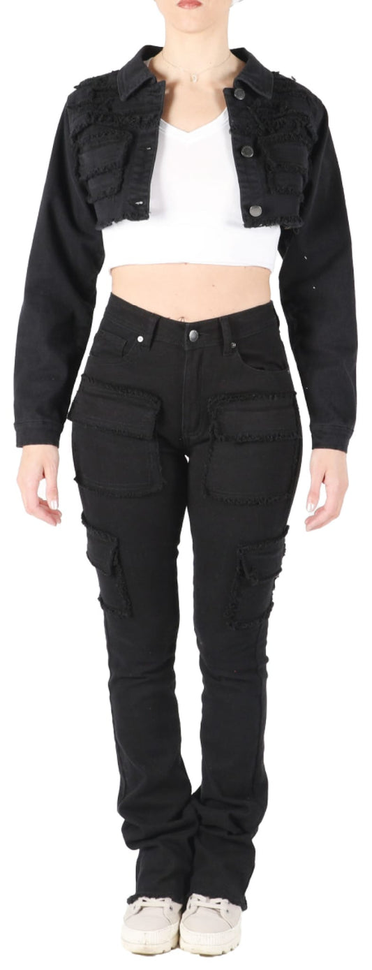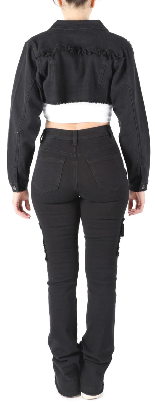 RED FOX CROP DENIM FRAY JACKET W LAZER CUTTING-(SD5502)
