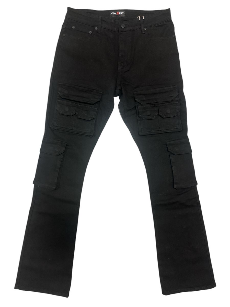 Concept Oxford Jet Black Cargo Flare Pants