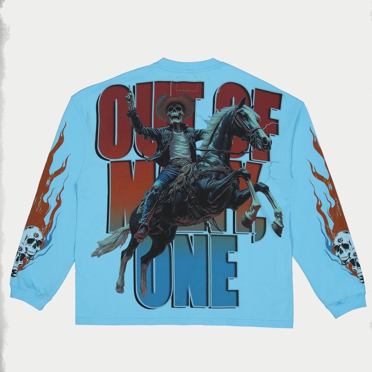 This long sleeve is crafted from 10oz mid-weight washed fabric and features a striking digital art piece.