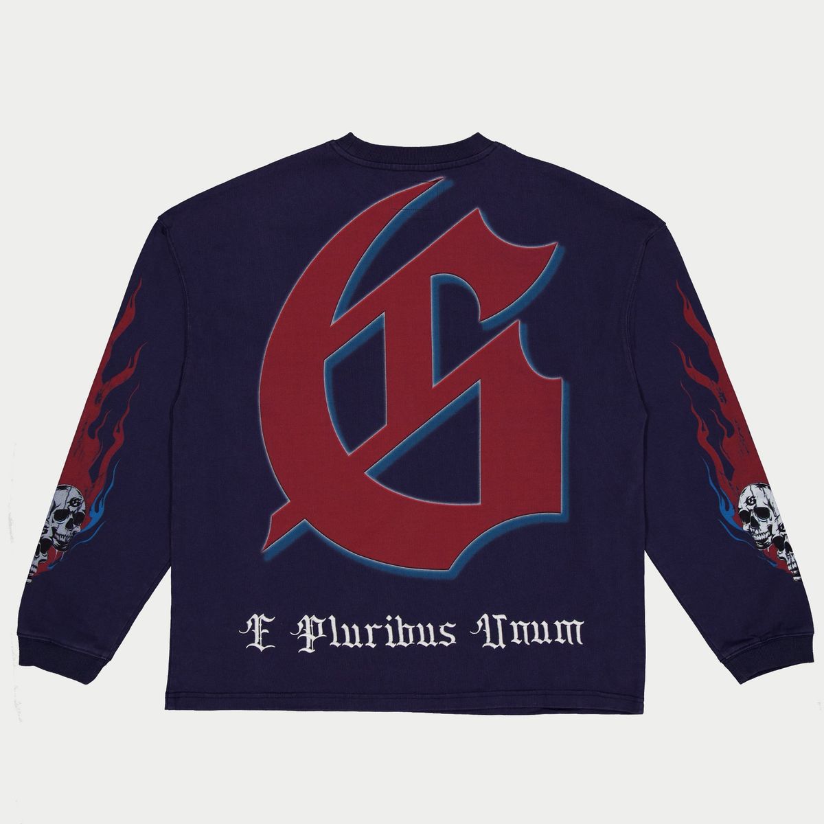 This long sleeve is crafted from 10oz mid-weight washed fabric and features a striking digital art piece.