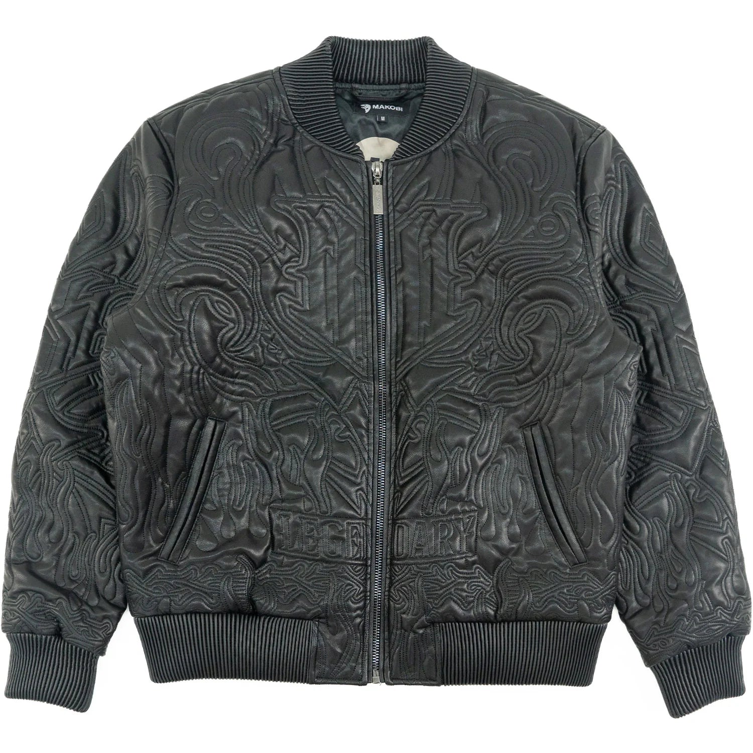 Stand out with the M4108 Legendary Quilted Bomber Jacket — a bold streetwear piece designed for statement-makers. Crafted from premium materials, this bomber features intricate all-over embroidered detailing with a flame and abstract motif that elevates its texture and dimension. The front proudly showcases the “LEGENDARY” design, symbolizing confidence and individuality. Finished with ribbed cuffs, hem, and collar for a snug fit, and a smooth zip-up front for easy wear. Perfect for layering and turning heads wherever you go.