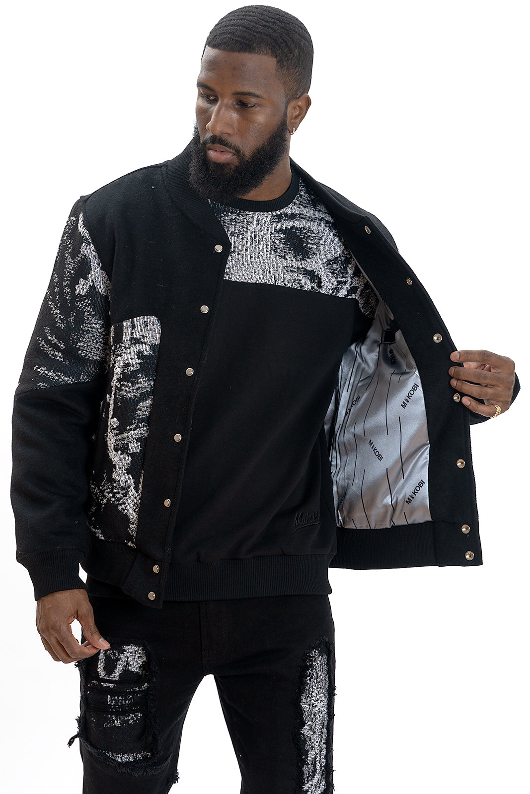 Makobi M1099 Bagnoli Tapestry Varsity Jacket - Black