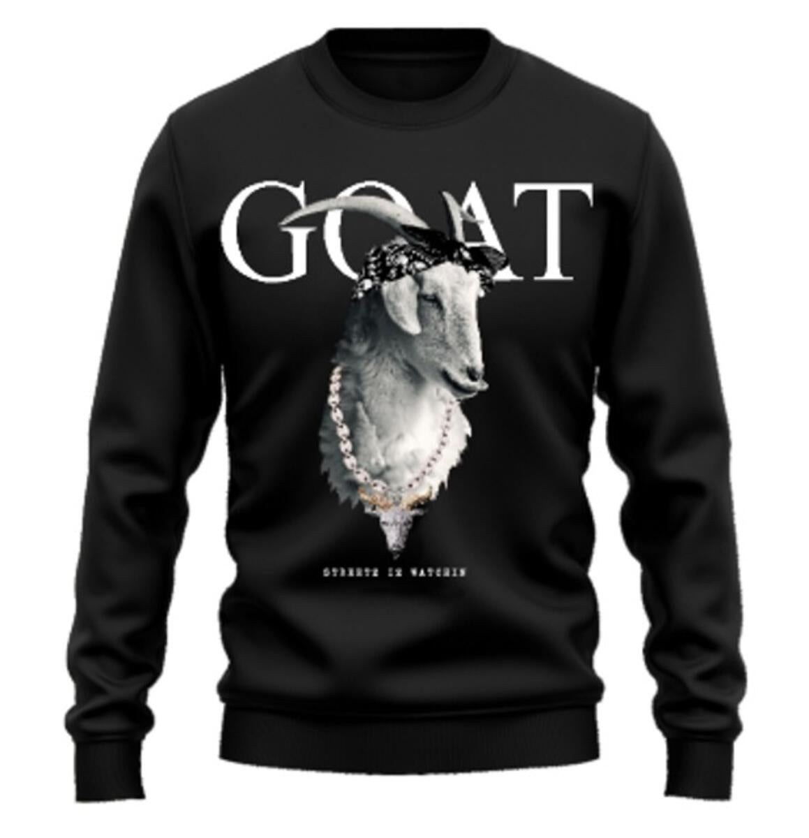 Get the ultimate streetwear style with our STREETZ IZ WATCHIN Goat Black Crew Neck.